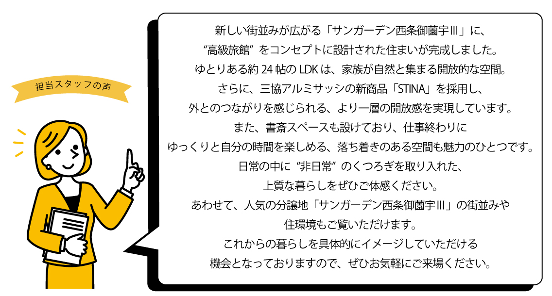 - 24帖の開放的なLDK。木目の美しさを引き立てる間接照明の柔らかな光が、住まう人を優しく包み込みます。広さだけではない、素材一つひとつが響き合う心地よい空間。家族の何気ない日常を、特別な時間へと変えるための意匠を凝らしました。